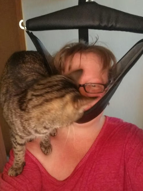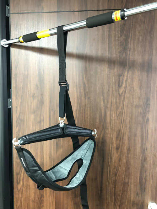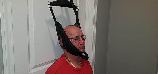 Our traction device is a padded head “hammock” that uses gentle, gravity-based cervical traction to decompress your neck, relieve tension, and improve posture, right from the comfort of home.