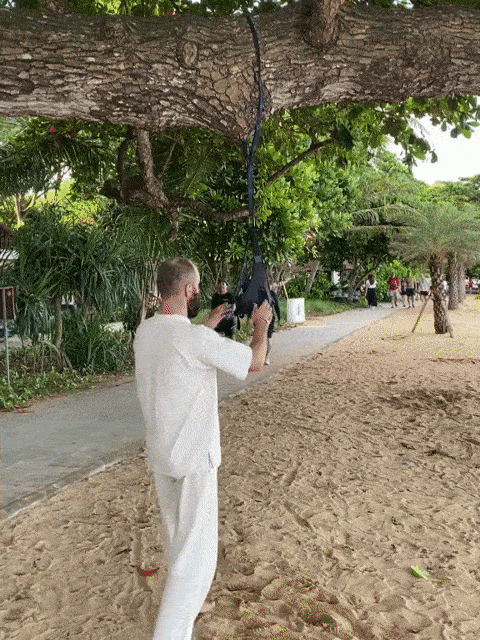 1. Secure the adjustable straps around a sturdy door anchor or overhead beam.
